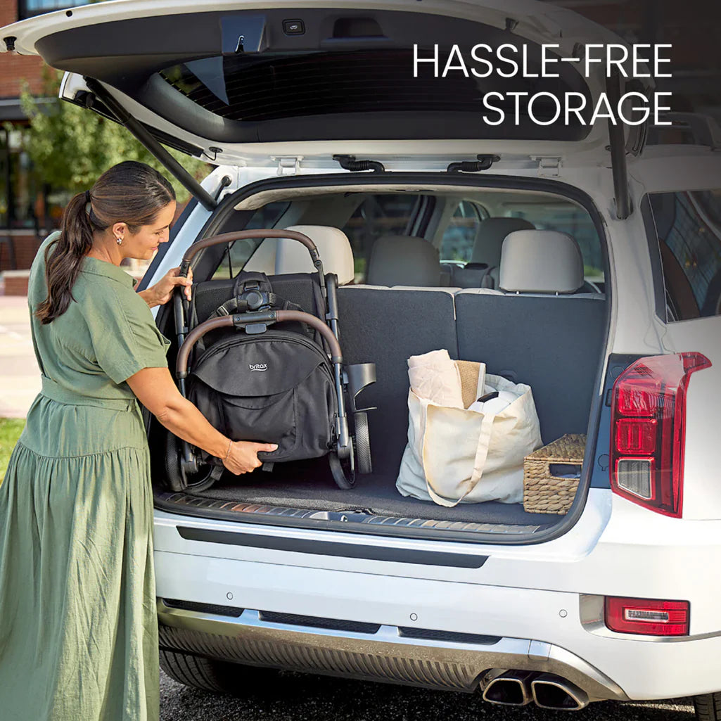 As a parent, you’re always on the move – and you need a convenient and easily foldable stroller that can keep up. With a lightweight frame and an effortless fold-and-go design, the Juniper™ compact stroller is made to fit smoothly into your family’s busy routine. This portable stroller features the FastPack™ system, which allows you to fold, grab, and go without stopping. FastPack includes one-hand RapidFold™ technology, a bumper bar that converts into a built-in carry handle, and a storage pocket that keeps your belongings secure and accessible even when the stroller is folded. With RapidFold, you can quickly and easily fold the stroller into a neat and compact trifold with just one hand. Then, grab the carry handle and go! It’s simple and seamless so you can keep moving – and it’s self-standing for hassle-free storage. This lightweight travel stroller also features built-in ventilation and a reclining toddler seat to help keep your little one comfortable. The all-wheel suspension and no-flat tires help even out bumpy paths, and the swiveling front wheels make for smooth and easy turns. With a large storage basket, a water-resistant UPF 50+ canopy, and a parent cup holder, Juniper will soon become your go-to, on-the-go stroller.