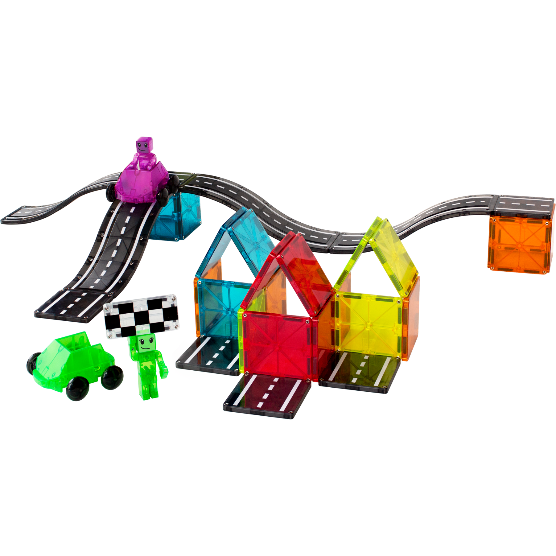 - Includes age-appropriate pieces for frustration-free play and adventure, including the first-ever, fully-magnetic Figures, Dashers, Ramps and Roads.