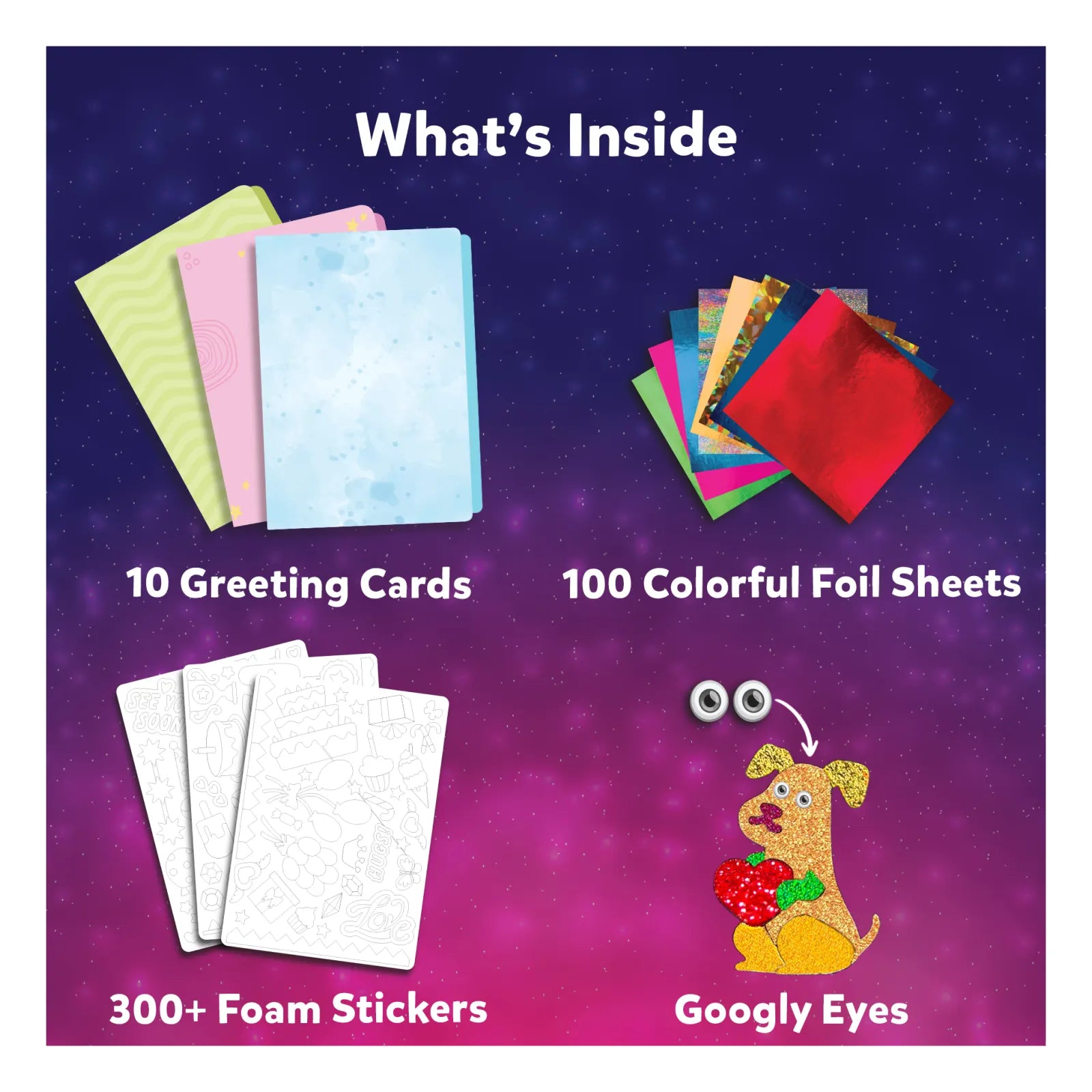 Get creative and design sparkly greeting cards for every occasion! Kids can create 10 unique cards for birthdays, thanks you's, invitations, or just to say "I love you" to the important people in their lives. This mess-free foil art activity set will keep them busy for hours!