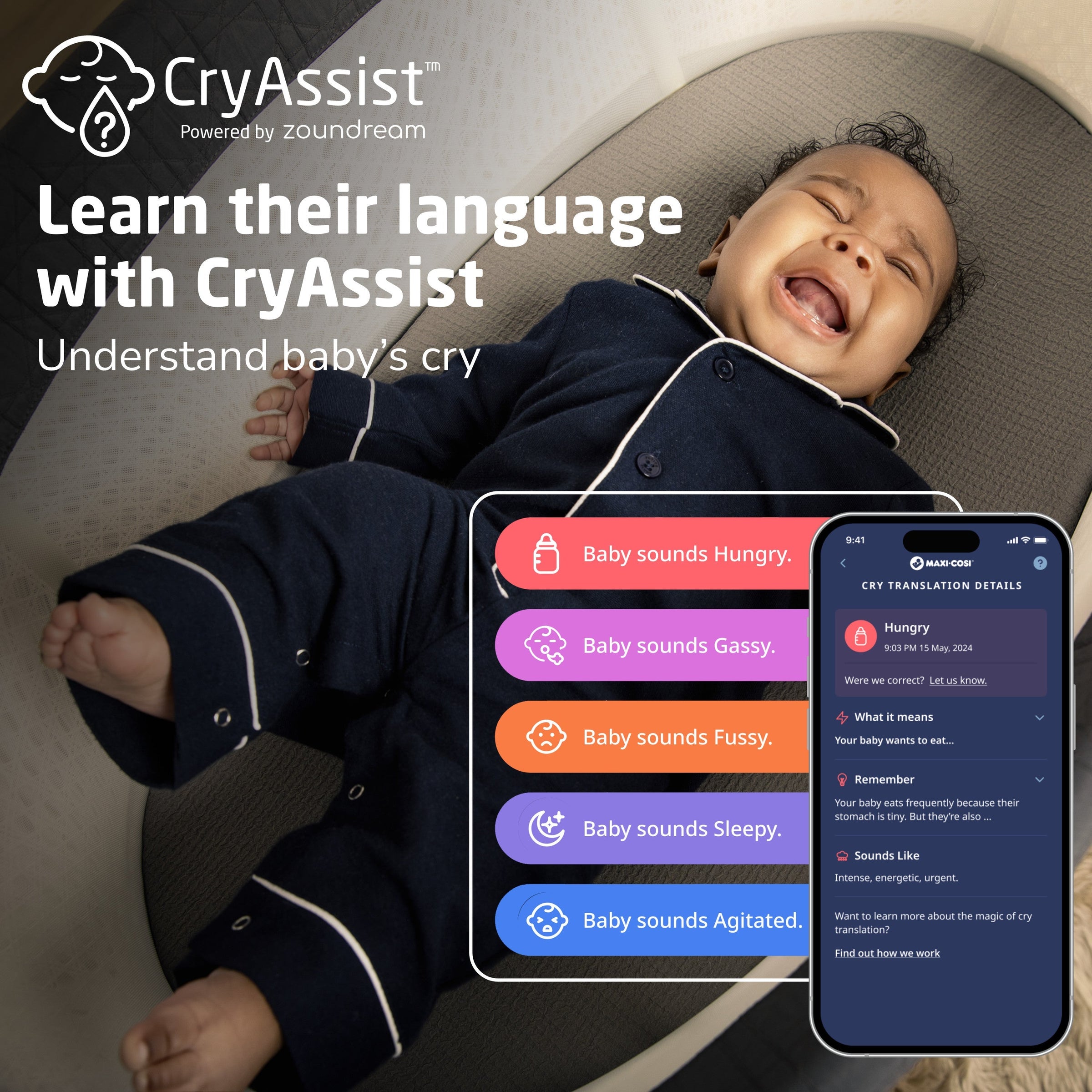- CryAssist™ translates your little one’s cries with advanced AI so you’ll know if baby might be sleepy, fussy, gassy, agitated, or hungry (6 months of service included)