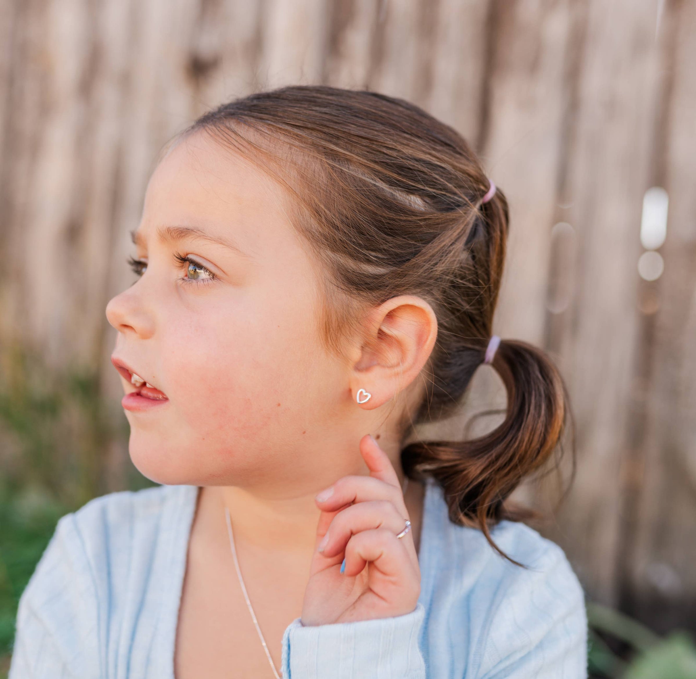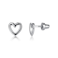 Cherished Moments Sterling Silver Screw-Back Hollow Heart Earrings for Kids