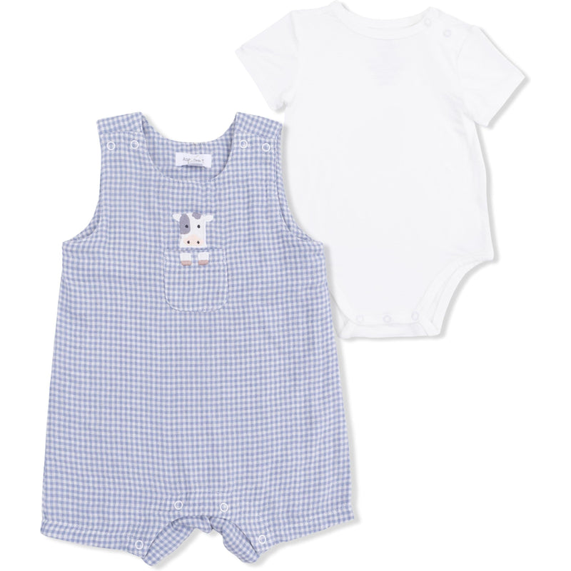 Angel Dear Angel Dear Cute Farm Animals Applique Jon Jon with Short Sleeve Bodysuit