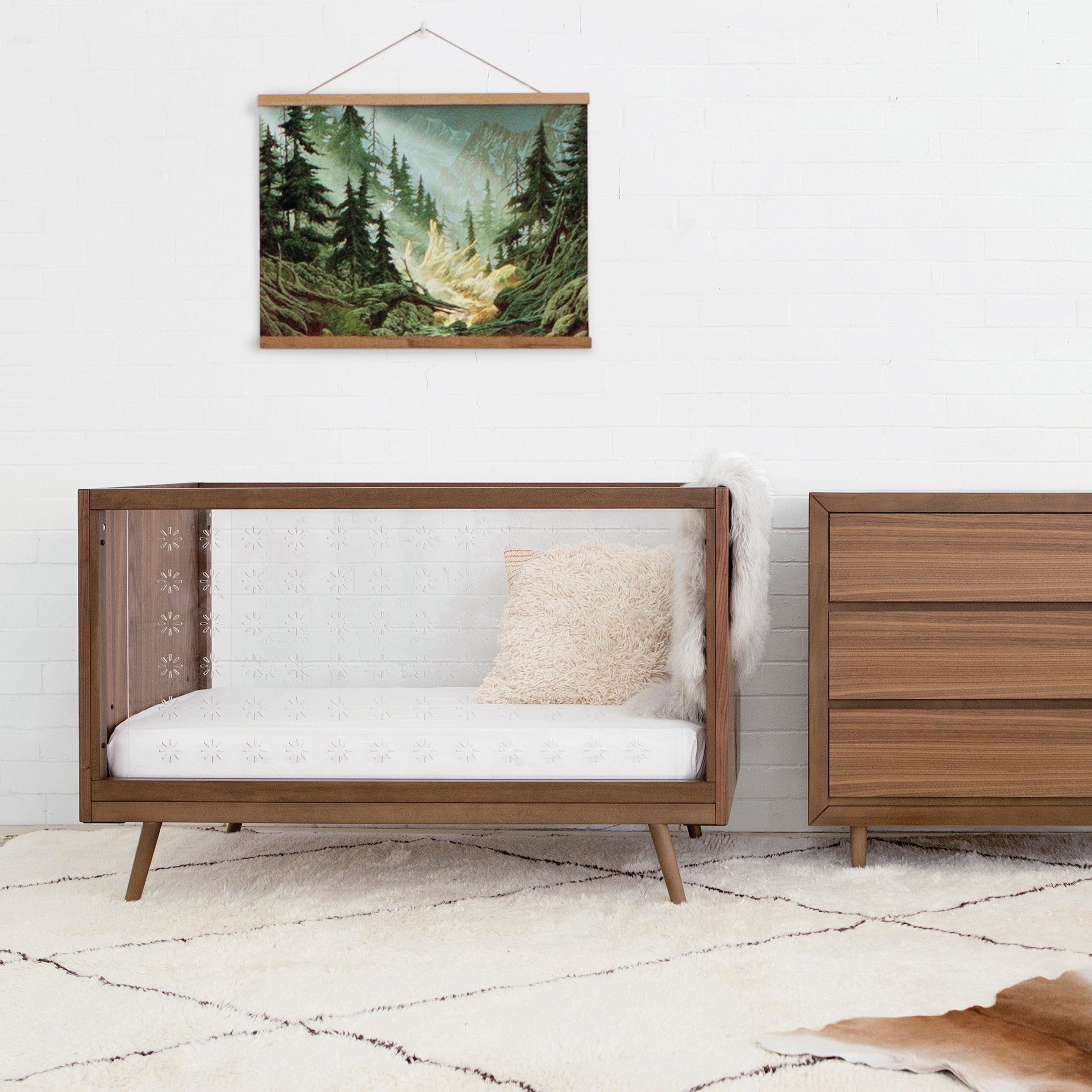Now your baby can see the world around them and you can keep an eye on them from afar. The Nifty Clear Crib combines the architectural lines of the mid-century aesthetic with contemporary clear acrylic sides, providing greater visibility for parents. A series of carefully designed star shapes have been laser cut out of the clear sides to allow for additional airflow, while still being small enough to keep little fingers safe.