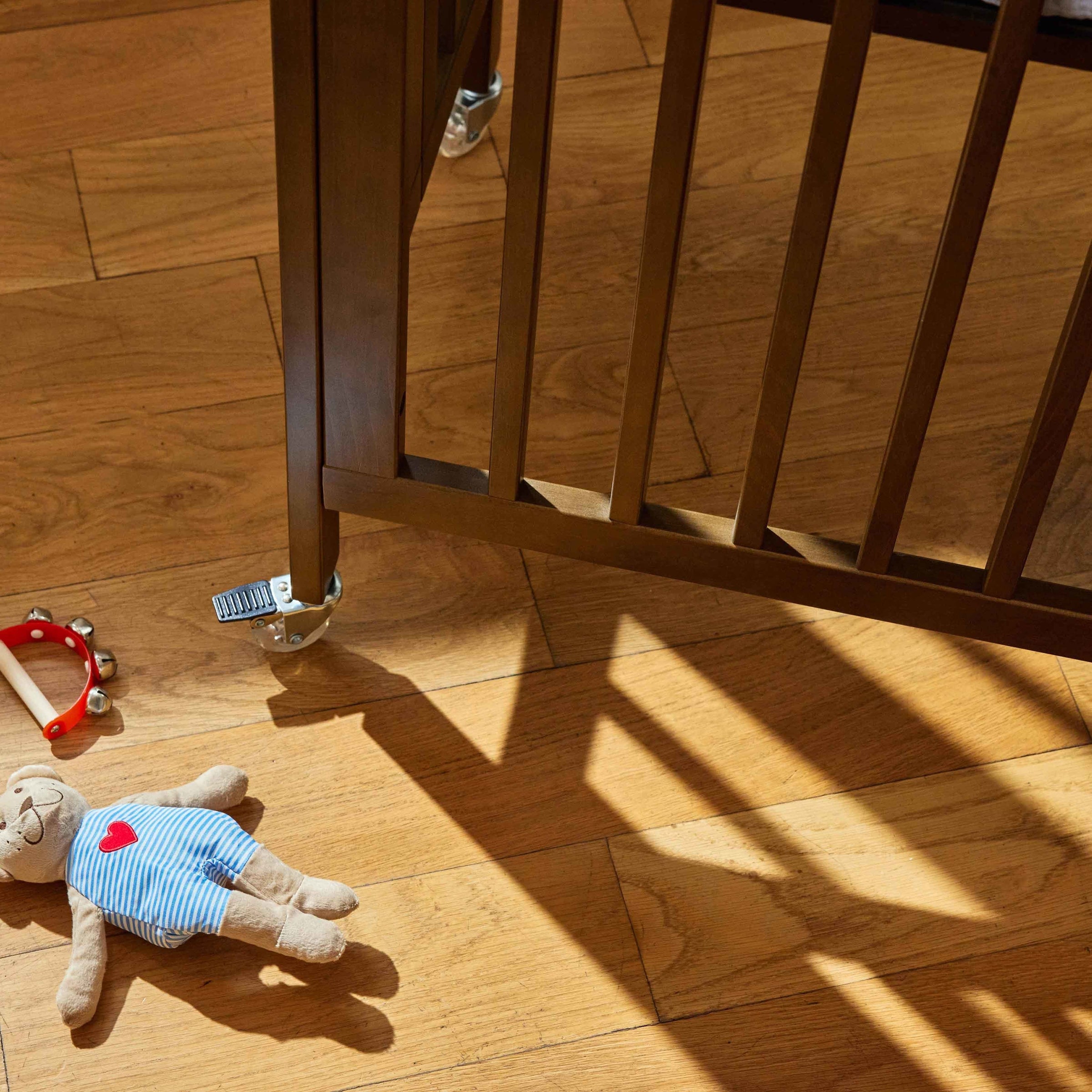 - PORTABLE & ADJUSTABLE HEIGHT: Glides easily from room to room on removable locking caster wheels in each stage. The standard crib features 3 mattress heights to adjust as your baby grows and develops.